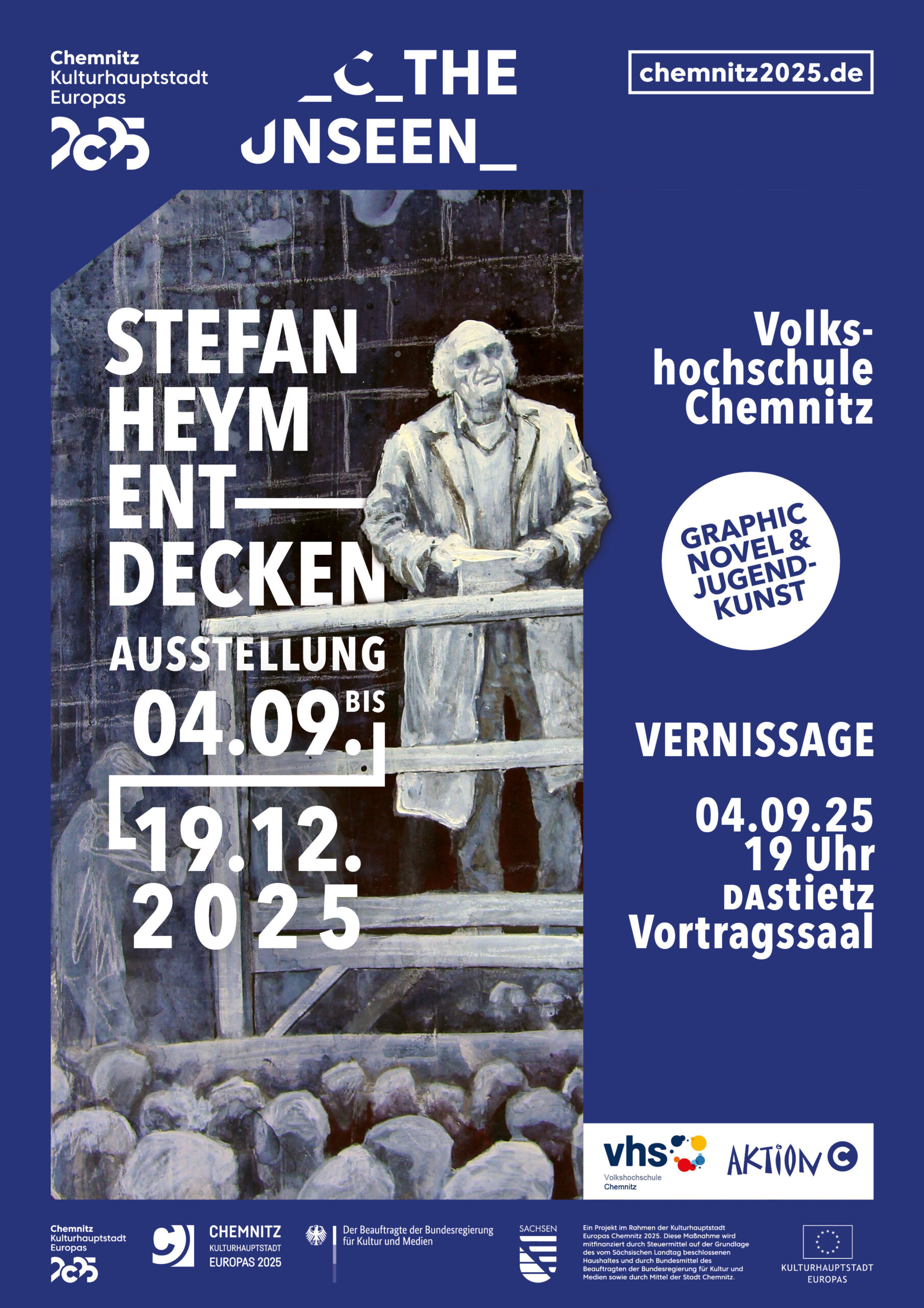 Schülerinnen und Schüler haben Werke von Heym illustriert, die zusammen mit Originalen zur Graphic Novel in einer Ausstellung im Zeitraum 04.09.-19.12.2025 in den Fluren der Volkshochschule Chemnitz präsentiert werden.